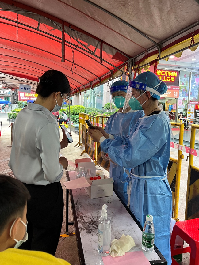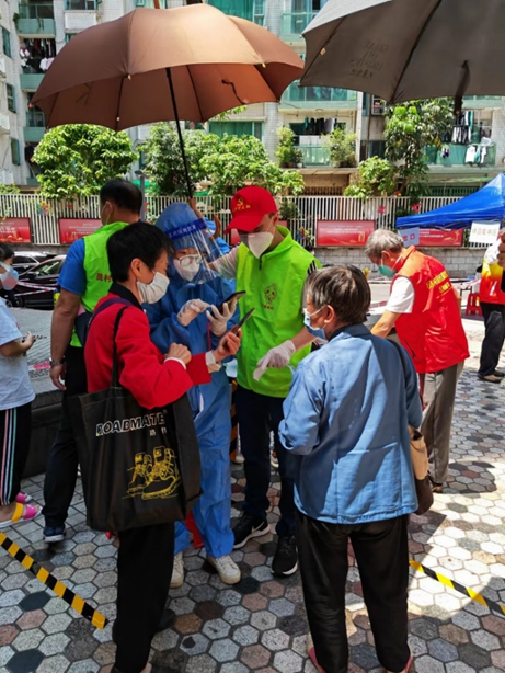 有呼必應(yīng)、聞令而動(dòng)!4月9日下午,公司收到支援天河區(qū)員村二橫路都市廣場(chǎng)疫情防控工作的任務(wù),由嚴(yán)巧敏、賀四華、黃建華、區(qū)志成、吳曉凱5名黨員組成的志愿突擊隊(duì)迅速集結(jié),投入到天河社區(qū)核酸檢測(cè)這場(chǎng)不眠的戰(zhàn)斗中。他們協(xié)助社區(qū)做好核酸檢測(cè)工作,測(cè)體溫、指引掃碼、維護(hù)現(xiàn)場(chǎng)秩序、耐心解答市民疑惑,在這個(gè)夜里,他們和集團(tuán)其余志愿者自發(fā)支援社區(qū)完成了逾1000人的疫情防控任務(wù),凌晨近2點(diǎn)才回家休息。截至10日,公司共派出黨員領(lǐng)導(dǎo)干部821人次下沉基層支援疫情防控工作,充分體現(xiàn)了“工程人”的責(zé)任與擔(dān)當(dāng)。