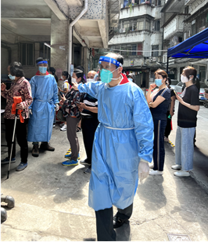 “錯過了前三批次下沉社區(qū)支援工作,這次集團組團式支援天河區(qū)疫情防控工作,我非去不可?!弊鳛橐幻兄?span style="margin: 0px; padding: 0px;">39年黨齡的老黨員,馬列思同志在收到黨支部電話通知的時候,毫不猶豫地報了名。兩次組團出征任務,他都被委以重任。身為領隊,他總是早早到大沙頭來等隊員集合,到達支援地點也是第一時間聯系社區(qū)工作人員,了解情況后分配后續(xù)工作,與隊友們一道,一干就是10個小時。